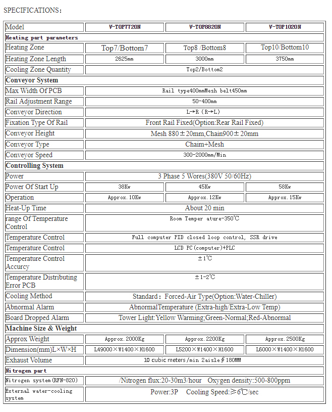 Strong cooling air cooling, cold air exchange fast, uniform wind speed, slope frequency control, tin point smooth and bright; (nitrogen machine optional)