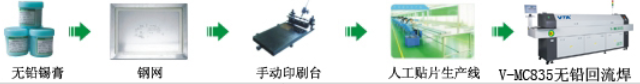 人工(gōng)貼片生產線 人工貼片生產線主要是人工模擬貼片機的貼片嘴,通過人工貼片筆(bǐ)自身產生的空氣壓強差(反向真空),將貼片元(yuán)器件從(cóng)料(liào)帶直接吸起,然後通(tōng)過(guò)人工將元器件放置(zhì)於相應的PADS位上,通過已調整(zhěng)的氣壓吸力,人(rén)工貼片筆吸著力小於錫(xī)漿(jiāng)(貼片膠)的粘著力,元器件自(zì)動放置在相應的PADS上.