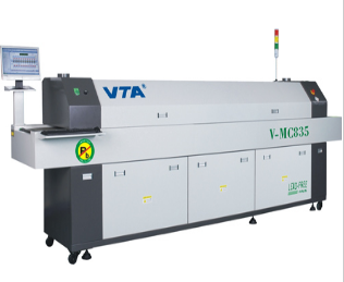 V-MC835無鉛回流焊 獨(dú)特先進長壽的加熱係統 加熱係統采用(yòng)高(gāo)效節能的瑞典110伏鎳烙(lào)發熱管,輻射功率峰值波長(zhǎng)4UM,配合曲麵(miàn)反射罩,熱效率高,升溫度速度快,特製強製熱(rè)風循環結構係統(tǒng),使PCB及元器件受熱均勻,完全消除“陰影(yǐng)效應(yīng)”。 采用瑞士CARLO(佳樂)大電(diàn)流固態繼電器無觸點輸出,安全、可靠,結合溫控器特有的模糊控製功能,一直監視外界溫度及熱量值(zhí)的變化(huà),以最小脈衝控製發熱器件,快速作出反應,保證溫控精度(dù)±1℃,機內溫度分布誤差在±2℃以內,長度方(fāng)向溫度分布符合IPC標準。 溫控采用進(jìn)口具模(mó)糊控製及PID智(zhì)能運算的精密控製器,通過PID智能運(yùn)算,自動控製(zhì)發熱量,模糊控製功能增(zēng)加超調與抑製功能並快速響應外部熱量變化的功能,最快速度響應外部熱量的變化並通過內部控製(zhì)保(bǎo)證溫度更加平衡。 發熱管模塊設計,方便維修拆(chāi)裝。 采用台(tái)灣三越高溫高速馬(mǎ)達,運風平穩,震動小,噪音小。 上爐體可整(zhěng)體開啟,便於爐(lú)膛清潔。 具溫度超差,,故障診斷,聲光報警 功率充沛,升溫迅速,從室溫至恒溫約15分鍾。 專用SSR散熱器,散熱效率大幅度提(tí)高,有效地延長其使(shǐ)用壽命 采用(yòng)耐高溫保護係統,爐膛均采(cǎi)用特殊材料製作,適(shì)合於無鉛焊接,焊接(jiē)區配備(bèi)鬆香助焊劑回收(shōu)係統,保護環(huán)境。 可靠平穩的傳輸係(xì)統(tǒng) 傳動係(xì)統采用台灣STK無級變速馬達、電調帶線速無級(jí)調速器,配(pèi)合1:150的STK渦輪減速器,運(yùn)行(háng)平穩(wěn),速(sù)度(dù)200-1800mm/min 無級可調(diào),並有準確的數字線(xiàn)速度指示。 采用獨(dú)立滾輪(lún)結構(gòu)及托平支撐,結合配套的不(bú)鏽鋼網帶(dài),運行平穩,速度精確可達±20mm/min; 專(zhuān)用不鏽鋼乙字網帶,耐用耐磨。長時間使用不輕易變(biàn)型。 |