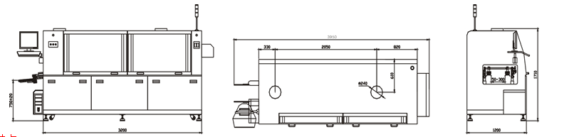 6波峰(fēng)焊機體線型(xíng)外觀設計,采用噴塑工藝,經久耐用(yòng)美觀大方
